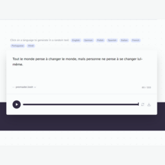 Synthèse vocale à partir d’un texte. Fonctionnalités limitées avec un plan gratuit, mais suffisantes pour la plupart des utilisations.