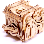 Au final, on obtient un cube d’une dizaine de centimètres de côté (7,5 x 8 x 9 cm pour être exact) qui fait office de tirelire. Trois faces de mécanismes permettent son ouverture. Le casse-tête n’est pas très compliqué en soi : cinq mouvements simplement à effectuer. Dès qu’on a repéré la première pièce qui peut être déplacée, le reste des mouvements s’enchaîne presque naturellement, chacun d’eux débloquant l’élément suivant. Ça tourne, ça coulisse, ça s’emboîte… et c’est vous qui l’avez fait !